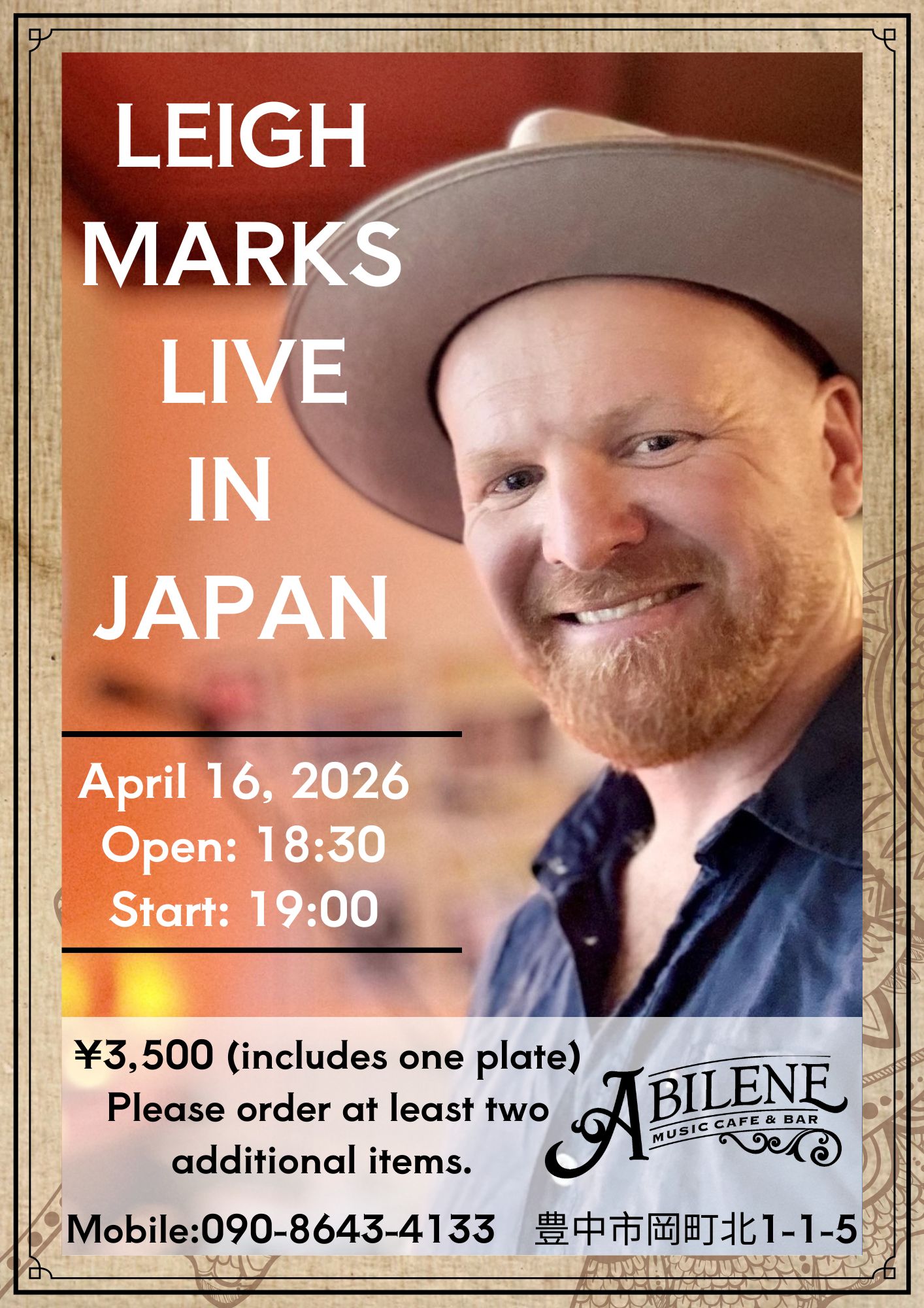 温かみのあるアコースティックな質感、力強いボーカル、そしてストーリーテリングを融合させた彼のパフォーマンスは、とてもフレンドリーで、アビリーンで最高の演奏を聞かせてくれることでしょう。